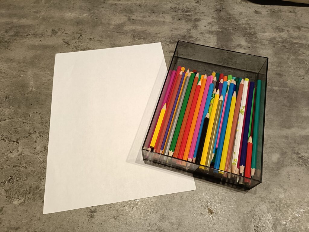 まずは、”色鉛筆”と”絵を描ける紙”を用意しましょう。