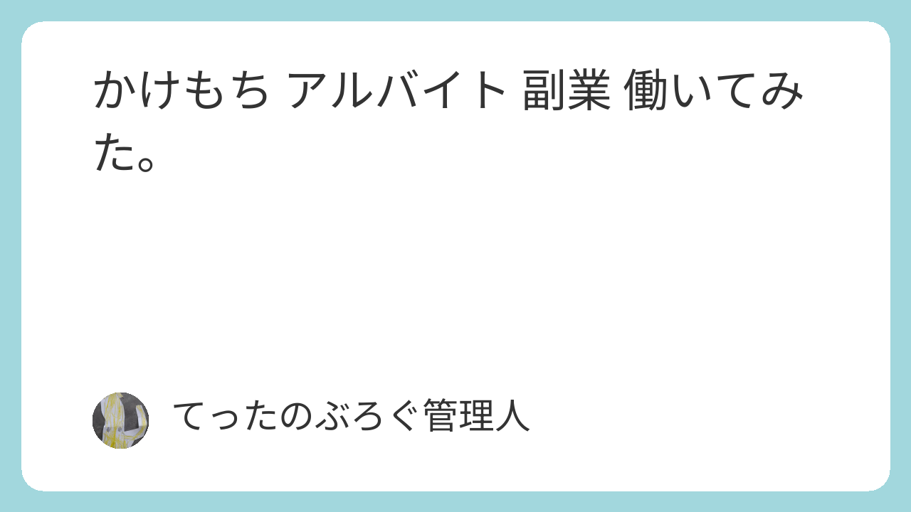 これから、副業にかけもちアルバイトを始めてみようと思う人、参考にしてみてください。